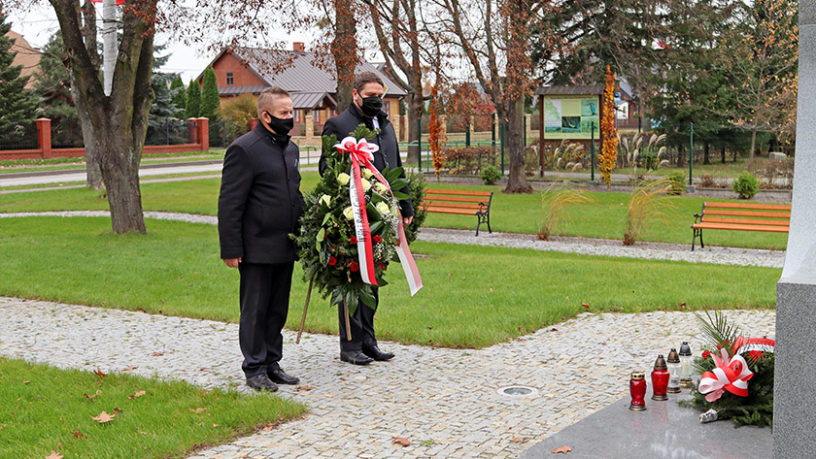 Z okazji Narodowego Święta Niepodległości Wójt Gminy Dorohusk – Wojciech Sawa oraz Przewodniczący Rady Gminy – Mieczysław Gałecki złożyli wieniec pod Pomnikiem 100-lecia Niepodległości RP.
