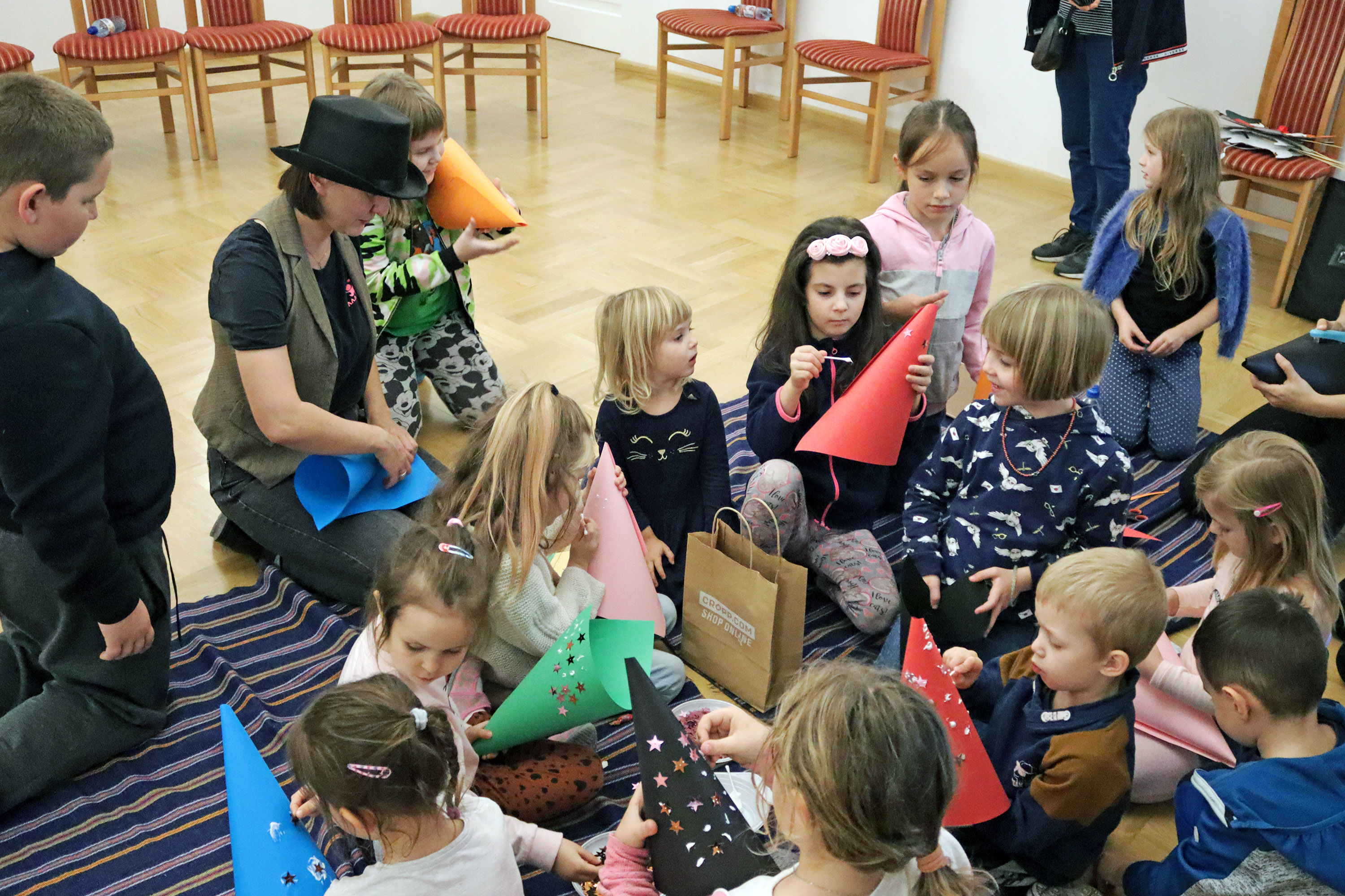 Podczas bajkowego spotkania z „Muminkami i zaczarowanym kapeluszem” dzieci przekonały się jaką moc ma znaleziony przez Muminka kapelusz, wspólnie szukały rubinów ukrytych przez czarodzieja oraz wykonały magiczne kapelusze.