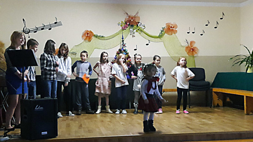 Na początku, w odświętnie udekorowanej sali, z pięknie przystrojoną choinką zebrani wysłuchali okolicznościowego montażu słowno-muzycznego w wykonaniu dzieci i młodzieży z Wólki Okopskiej. Wiele śmiechu wywołał skecz pt. „Sztuczki karciane” w wykonaniu Krystiana Dziuriana. Nie mniej braw otrzymali wykonawcy tańca Zumba. Następnie na scenie przez kilkanaście minut królował „mikrofon dla każdego”.