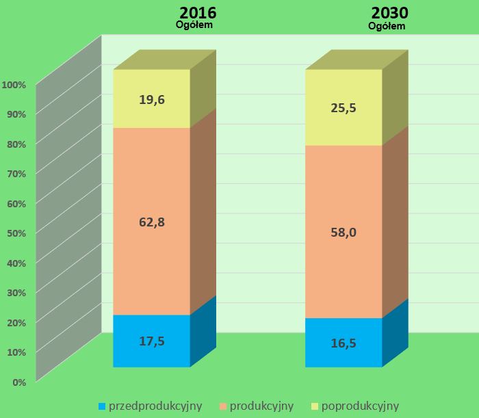 Do ponad 25 procent populacji zwiększy się udział ludzi w wieku poprodukcyjnym, w tym samym czasie o blisko 5 punktów proc. spadnie odsetek ludzi uczących się i pracujących w wieku 15-64 lata. W przełożeniu na mieszkańców będzie to ubytek ponad 500 osób. Również w grupie 0-14 lat nieznacznie ubędzie dzieci. Pełną prognozę dla gminy Dorohusk można pobrać z tego miejsca.