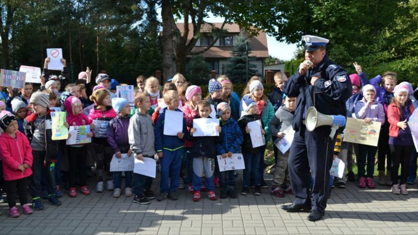 Celem akcji było wdrożenie działań profilaktycznych wzmacniających bezpieczeństwo naszych najmłodszych uczniów. Jest to jedno z priorytetowych zadań naszej szkoły, zwłaszcza że większość uczniów dojeżdża do szkoły. Głównym celem akcji było wskazanie bezpiecznej drogi do szkoły, prawidłowego zachowania się na przejściu dla pieszych oraz zapoznanie dzieci z podstawowymi zasadami bezpieczeństwa w ruchu drogowym. Naczelnik Wydziału Ruchu Drogowego Komendy Policji Miejskiej w Chełmie Pan Tomasz Błaziak przeprowadził spotkanie z uczniami, podczas, którego uczniowie w sposób praktyczny połączony ze wskazówkami bezpiecznego przechodzenia przez jezdnię uczyli się obowiązujących zasad przy przechodzeniu przez zebrę.