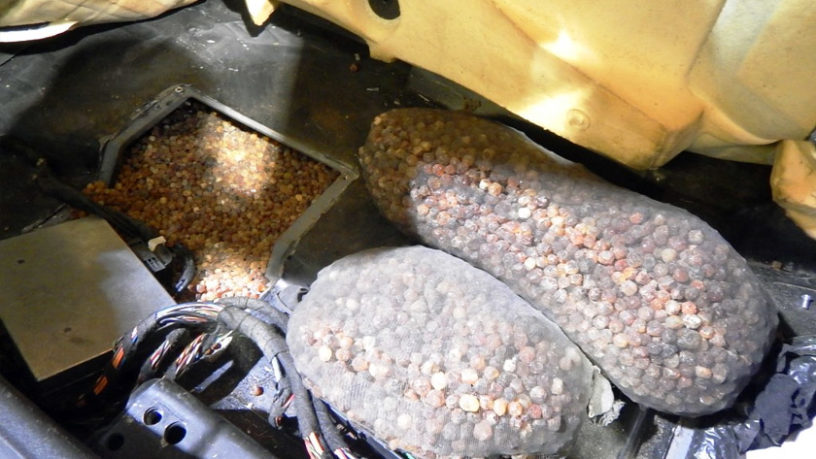 Bursztyn funkcjonariusze znaleźli w niedzielę 26 marca 2017 r. w osobowym Audi na białoruskich numerach rejestracyjnych. Ważące niemal 40 kg jantarowe kamyki wydostali z podłogi auta. Do ich własności przyznała się pasażerka, 47-letnia mieszkanka Brześcia. Kobieta tłumaczyła, że bursztyn kupiła jeszcze na Białorusi i wiozła do Gdańska. Miał być surowcem do wykonania obrazów. Gotowe bursztynowe dzieła Białorusinka chciała sprzedać w Niemczech. Bursztyn trafił do magazynu Urzędu Celno-Skarbowego, a przeciwko kobiecie funkcjonariusze wszczęli postępowanie karne skarbowe. W związku z podjętą próbą przemytu 47-latka będzie musiała zapłacić karę grzywny. Przykrych konsekwencji podróżna mogła uniknąć, gdyby jantar zgłosiła do kontroli i opłaciła należności związane z jego przywozem na terytorium Polski i Unii Europejskiej.