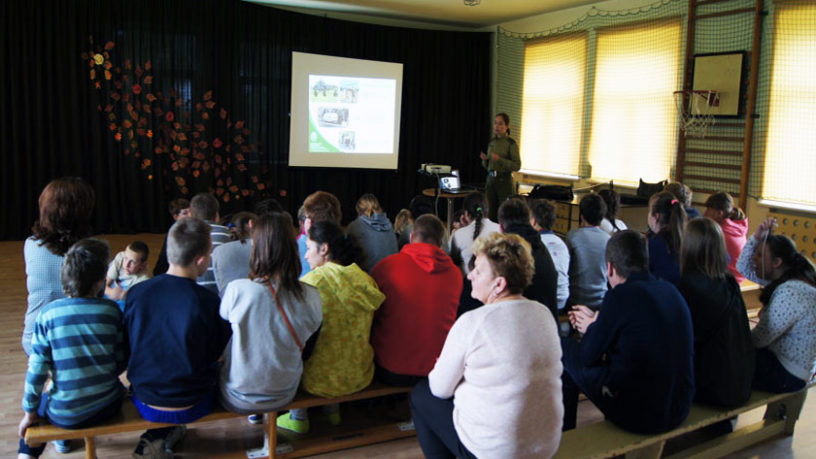 Pani starszy chorąży przybliżyła najważniejsze zagadnienia dotyczące formacji oraz omówiła główne jej zadania. Zaprezentowała również umundurowanie funkcjonariuszy. Dziewczętom szczególnie spodobał się służbowy strój kobiecy, chłopców zaś zaciekawił sprzęt z jakiego na co dzień korzystają pogranicznicy: kamery termowizyjne i gogle noktowizyjne, samochody terenowe, motocykle, łodzie pontonowe i śmigłowce.