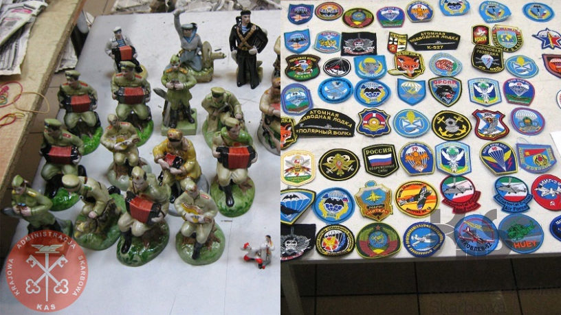 Radzieckie hełmofony, porcelanowe figurki przedstawiające żołnierzy w mundurach Armii Czerwonej, żołnierskie furażerki oraz czapki polowe z symbolami sierpa i młota, odznaczenia i emblematy do mundurów, odznaczenia Armii Czerwonej – te i inne przedmioty, w sumie 2,5 tys. szt., zatrzymali funkcjonariusze KAS na granicy w Dorohusku. Towar ujawnili w bagażu obywatela Ukrainy, który wyjaśnił, że wszystkie przedmioty kupił na bazarze w Kijowie i wiózł dla znajomych w Niemczech. W związku z podjętą próbą przemytu przeciwko mężczyźnie wszczęta została sprawa karna skarbowa. Na poczet grożącej mu kary podróżny wpłacił 300 złotych. Po ocenie rzeczoznawcy zatrzymane przedmioty prawdopodobnie trafią do muzeum.