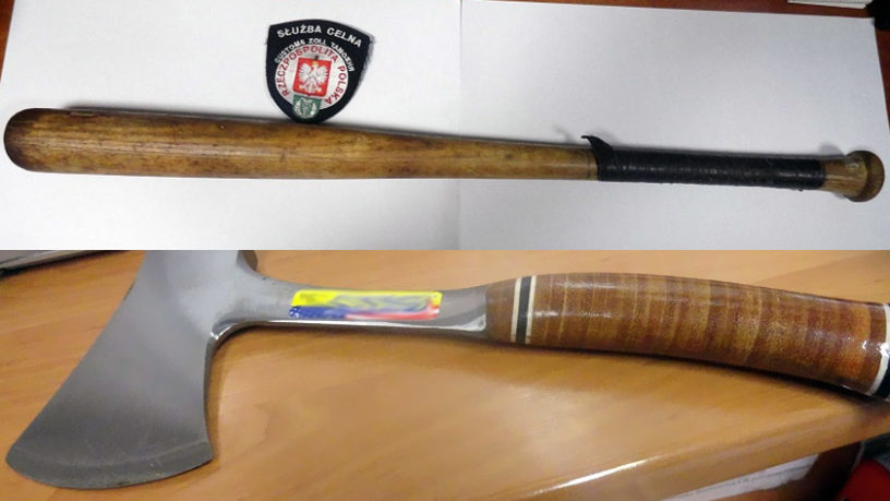 Podróżujący autokarem obywatel Ukrainy próbował wwieźć do Polski kastet. Funkcjonariusze KAS ujawnili broń w jego bagażu podręcznym. Inny obywatel tego kraju, podróżujący autokarem relacji Kijów – Warszawa, próbował natomiast przemycić narzędzie o długości ok 35 cm przypominające toporek. Z kolei przedmiot o wyglądzie kija bejsbolowego funkcjonariusze ujawnili w bagażu podręcznym obywatela Francji podróżującego osobowym BMW. Wszystkie te ujawnienia miały miejsce w Oddziale Celnym Drogowym w Dorohusku.
