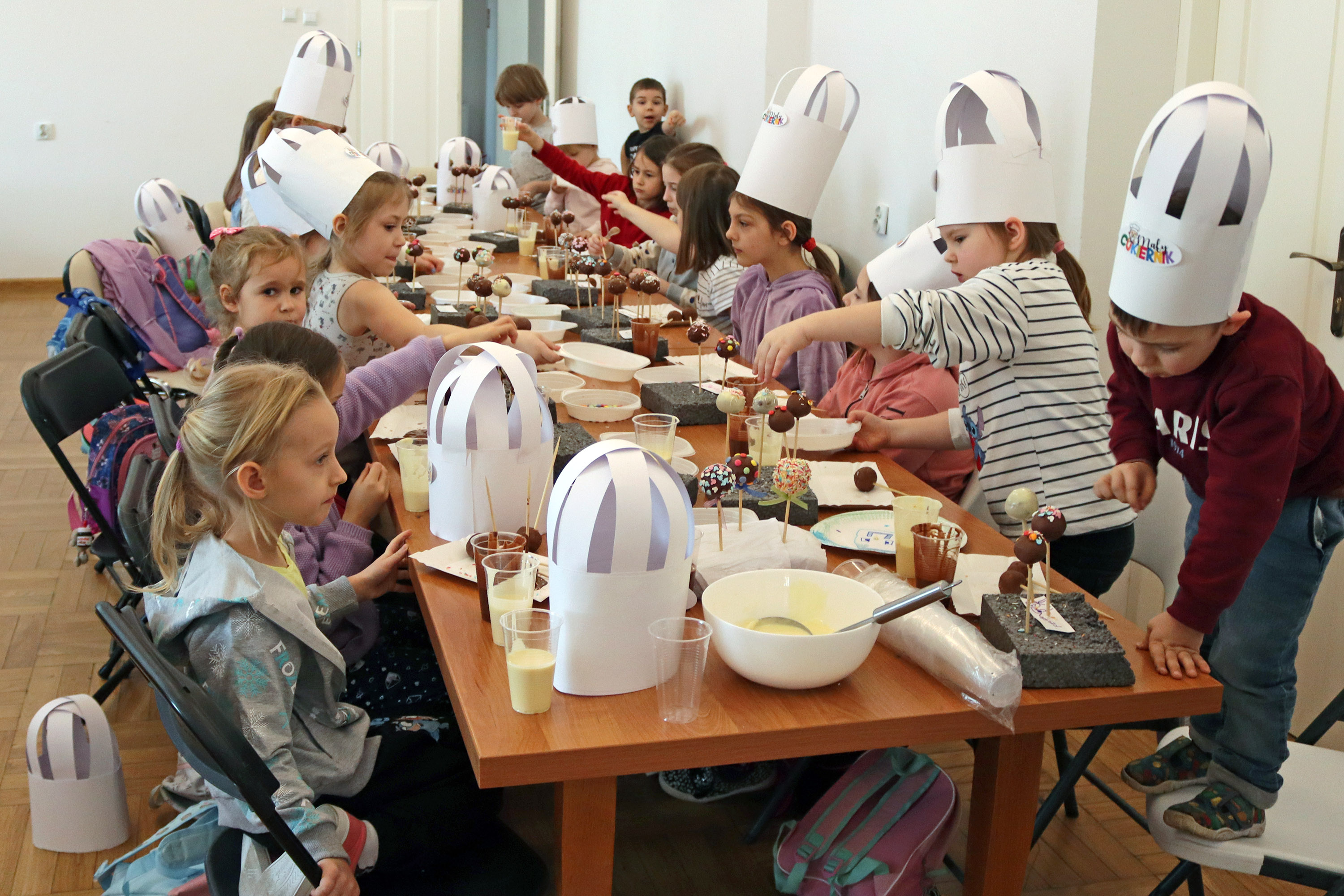 Kolejnym punktem programu były warsztaty kulinarne, podczas których dzieci stworzyły kolorowe cake popsy – słodkie przysmaki, które nie tylko cieszyły oko, ale i podniebienie.