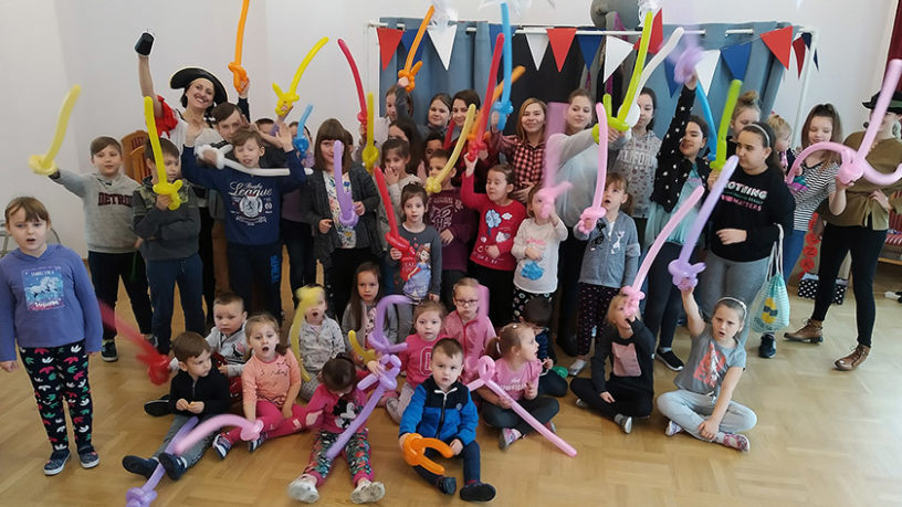 Podczas ferii odbyły się dwa spotkania z bajkowymi postaciami. Odwiedził nas teatr KTO TAM? ze Świdnika prezentując bajkę „Czerwony Kapturek” i przeprowadzając warsztaty teatralne. Natomiast w ramach „Bajkowych Spotkań” panie z Akademii „Aaa kuku” zabrały dzieci w pełną zabaw krainę Piotrusia Pana oraz Kapitana Haka.