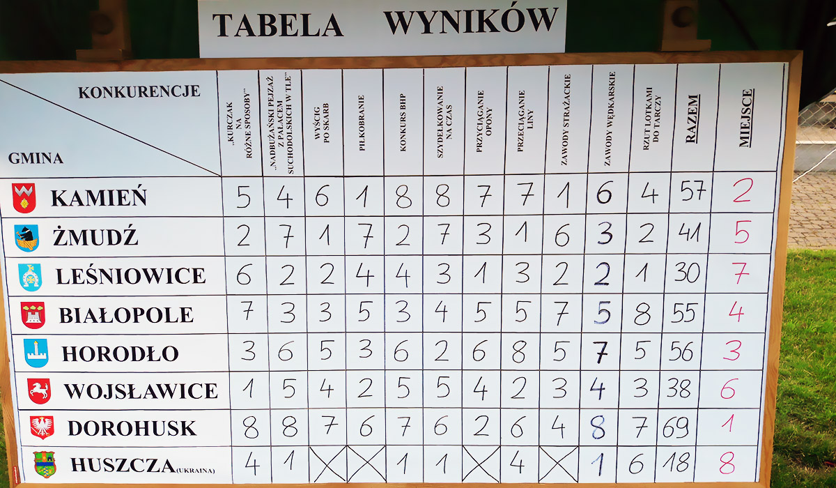 Turniej gmin to nie tylko zacięta rywalizacja, ale przede wszystkim okazja do dobrej zabawy i spotkania z sąsiadami. W tegorocznej edycji do zmagań przystąpiło 8 gmin: Białopole, Kamień, Horodło, Żmudź, Wojsławice, Leśniowice, Dorohusk oraz Huszcza z Ukrainy.
