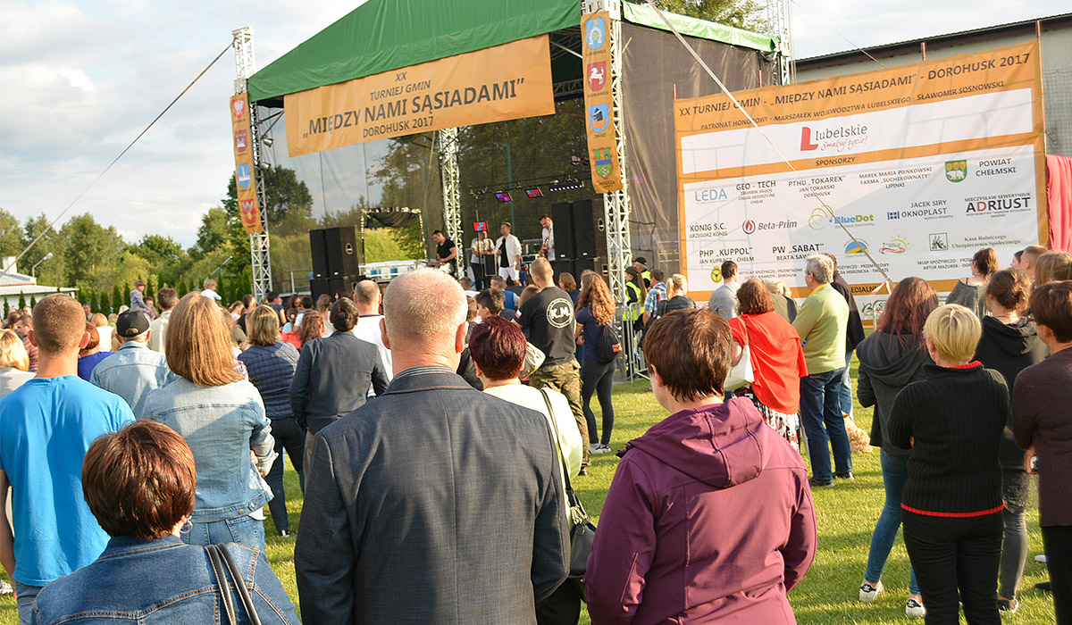 W niedzielę, 2 lipca 2017 r. na stadionie sportowym w Dorohusku odbył się jubileuszowy XX Turniej Gmin „Między Nami Sąsiadami”. Jak co roku, reprezentacje gmin współzawodniczyły ze sobą w różnych konkurencjach oraz mogły zaprezentować swój dorobek kulturalny.