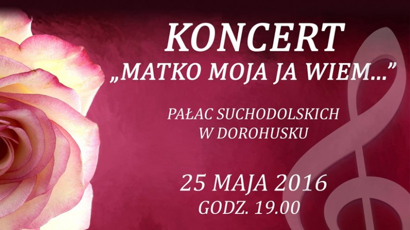 Gminny Ośrodek Kultury i Turystyki w Dorohusku zaprasza na koncert z okazji Dnia Matki, który odbędzie się 25 maja 2016 r. o godz. 19:00 w Pałacu Suchodolskich w Dorohusku.