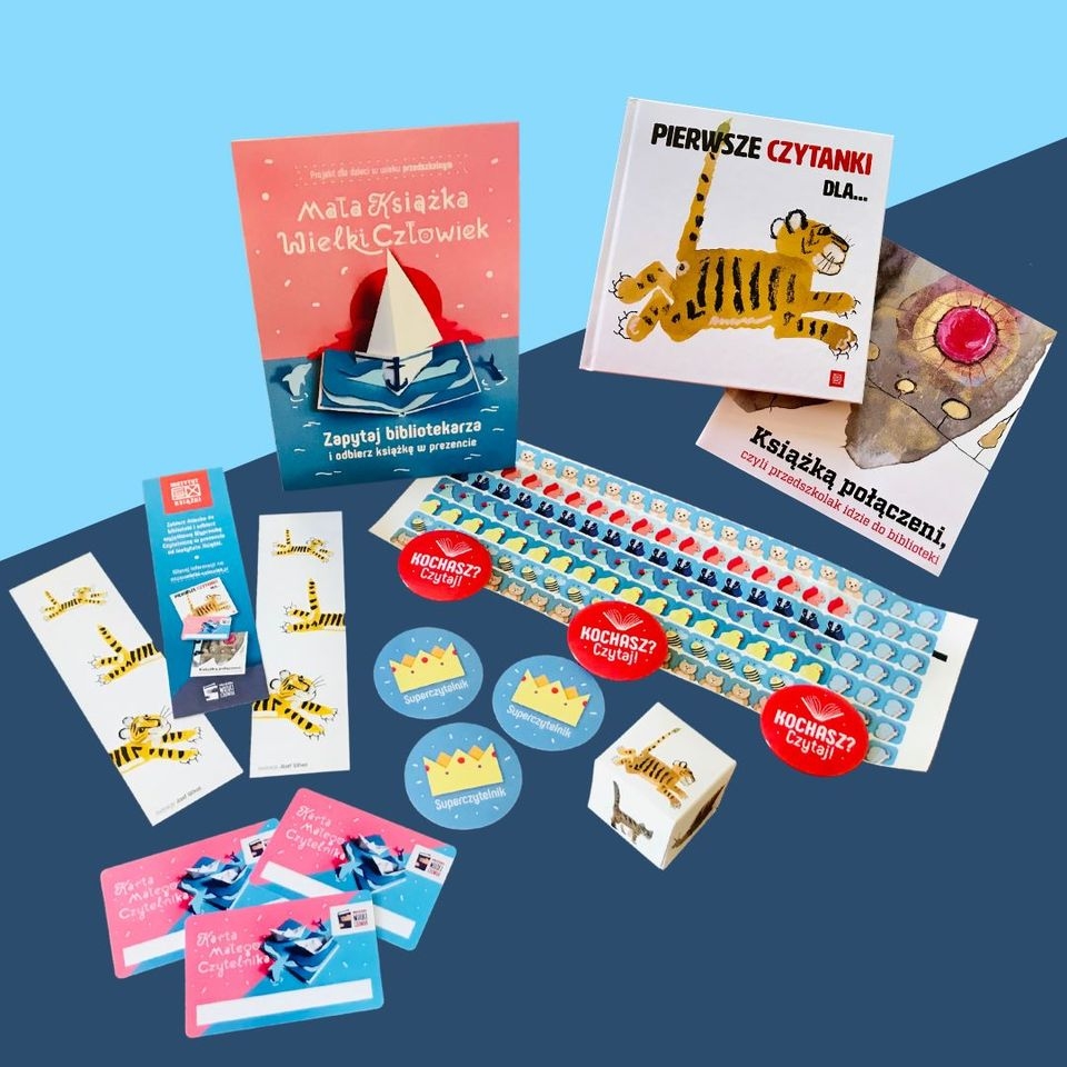 W wyprawce znajduje się książka „Pierwsze czytanki dla…” oraz Karta Małego Czytelnika, do której Mały Czytelnik będzie zbierał naklejki – za każdą wizytę zakończoną wypożyczeniem książeczki otrzyma jedną naklejkę, a po uzbieraniu dziesięciu naklejek otrzyma imienny dyplom potwierdzający aktywność czytelniczą, odznakę Superczytelnika i kostkę do gry!