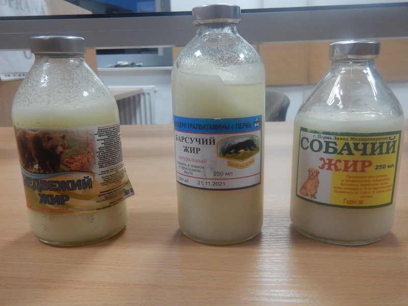 Najbardziej osobliwym przedmiotem przemytu, który ujawnili funkcjonariusze z przejścia w Dorohusku, był tłuszcz zwierzęcy: niedźwiedzi, borsuczy i psi. 3 opakowania – po 1 sztuce każdego rodzaju tłuszczu – przewoziła „w celach leczniczych” 61-letnia obywatelka Ukrainy. Wobec podejrzanej wszczęto sprawę karną skarbową i zajęto na poczet grzywny 200 zł.