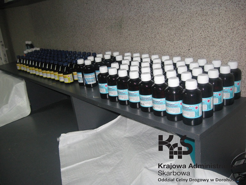 Z kolei w trakcie szczegółowej kontroli samochodu terenowego Porsche Cayenne na ukraińskich numerach rejestracyjnych funkcjonariusze z Oddziału Celnego Drogowego w Dorohusku wykryli produkty farmaceutyczne dla zwierząt. Kierujący pojazdem 46-letni obywatel Ukrainy oświadczył, że leki weterynaryjne zakupił dla swego pracodawcy w Niemczech. Uznał również, że „…tak mała ilość…” specyfików nie wymaga zgłoszenia do odprawy celnej. Łącznie zatrzymano 136 sztuk aseptyków dla zwierząt, m.in. „Ammonia Solution”, „Chlorhexidin”, „Hydregen Peroxide”. Podejrzanego ukarano mandatem w kwocie 300 zł.