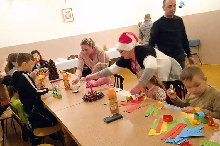 Organizatorki zadbały o smaczny poczęstunek i prezenty dla każdego dziecka. Wszyscy uczestnicy spotkania wykonali kolorowy łańcuch choinkowy. W wydarzeniu gościnnie uczestniczyła dyrektor Gminnego Ośrodka Kultury i Turystyki – Renata Lalik, która przygotowała dla dzieci konkurs i wręczyła upominki.