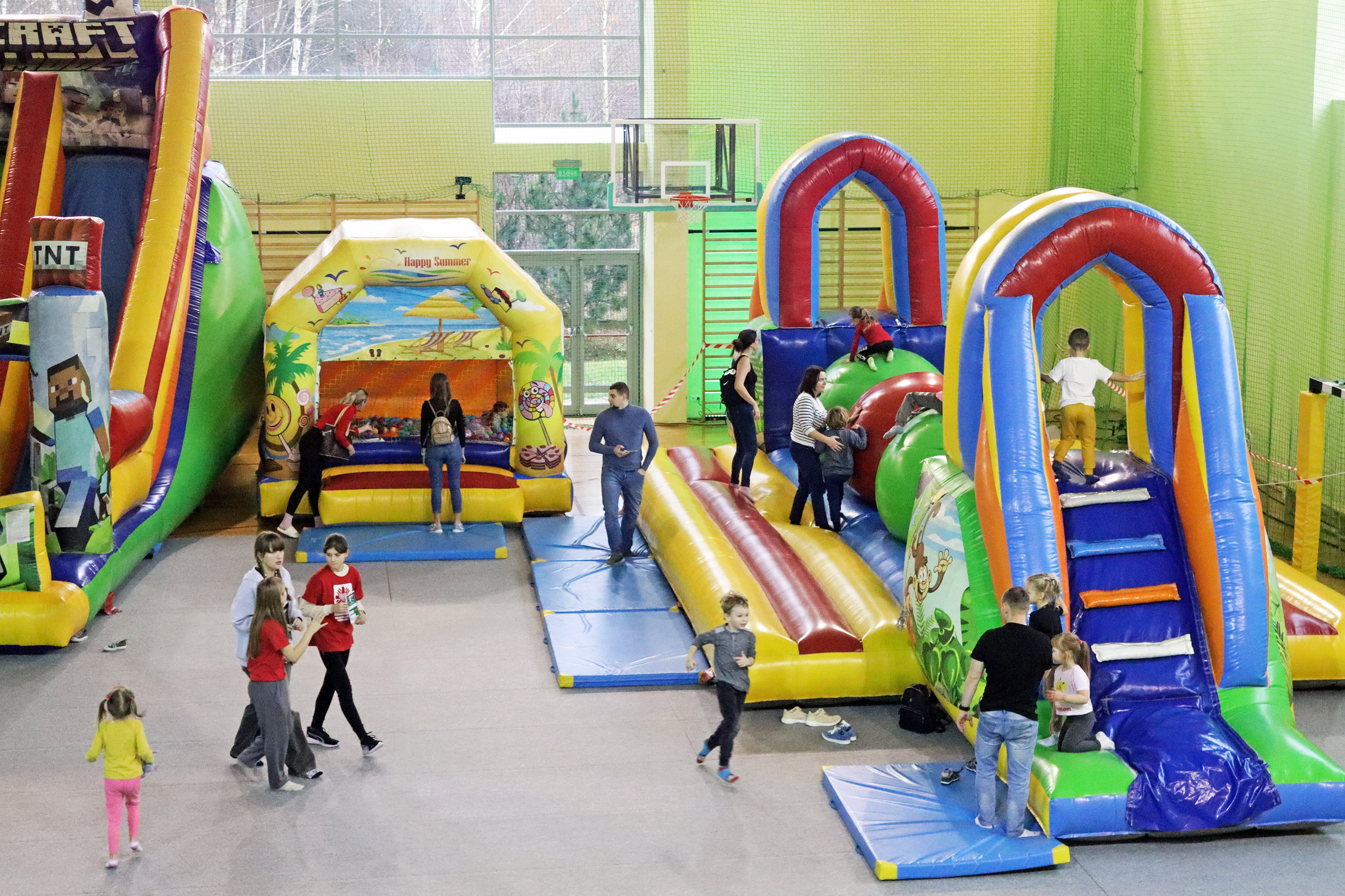 W trakcie festiwalu dzieci miały okazję bawić się na wielu dmuchanych atrakcjach, takich jak zamki, zjeżdżalnie i inne konstrukcje, które dostarczały im mnóstwo radości.