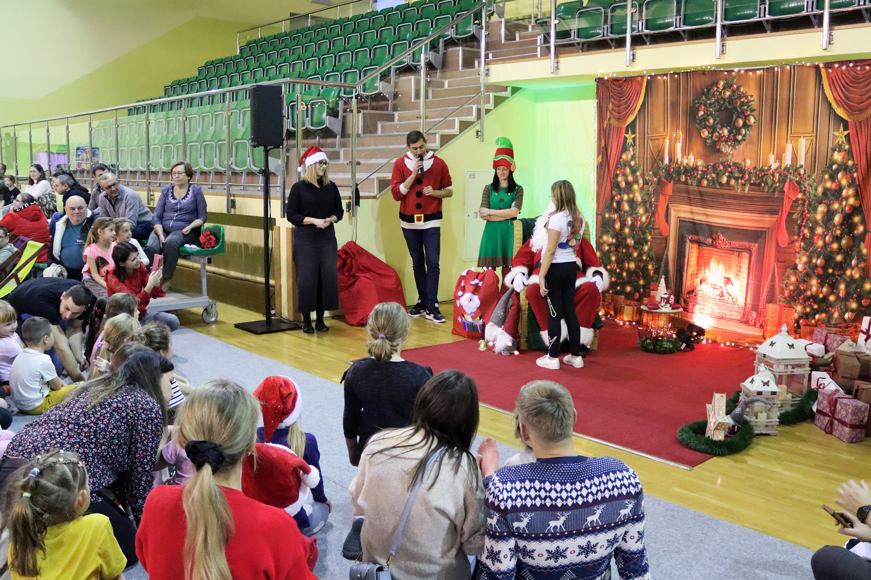 Szczególnym momentem było pojawienie się Świętego Mikołaja, który wręczał dzieciom prezenty, wprowadzając wszystkich w magiczną atmosferę świąt.