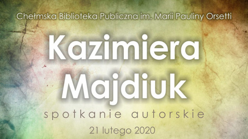 Chełmska Biblioteka Publiczna im. Marii Pauliny Orsetti zaprasza na spotkanie autorskie z Kazimierą Majdiuk, które odbędzie się 21 lutego 2020 r. (piątek), o godz. 16:00, w sali widowiskowej ChBP (ul. Partyzantów 40).