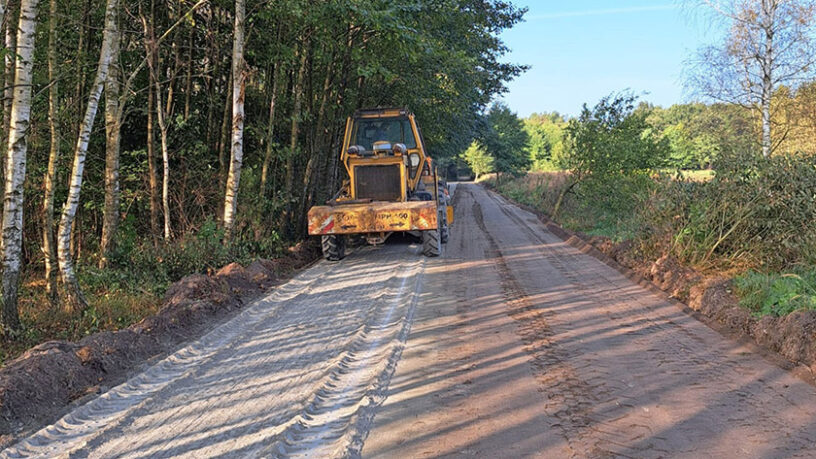 Trwają prace na drodze gminnej w miejscowości Okopy. Inwestycja realizowana jest na odcinku drogi o długości 730 m.