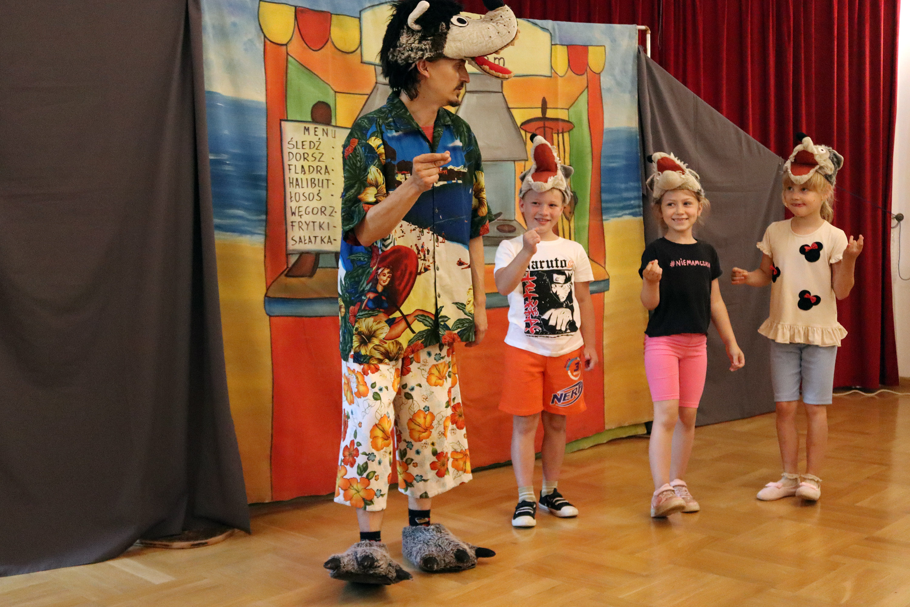 Zaczęliśmy od pełnego humoru i wartości spektaklu „Wilk i Zając na wakacjach” w wykonaniu Teatru KRAK-ART. Dzieci wzięły udział w grze terenowej „Śladami zwierząt”, ucząc się rozpoznawać tropy leśnych mieszkańców.