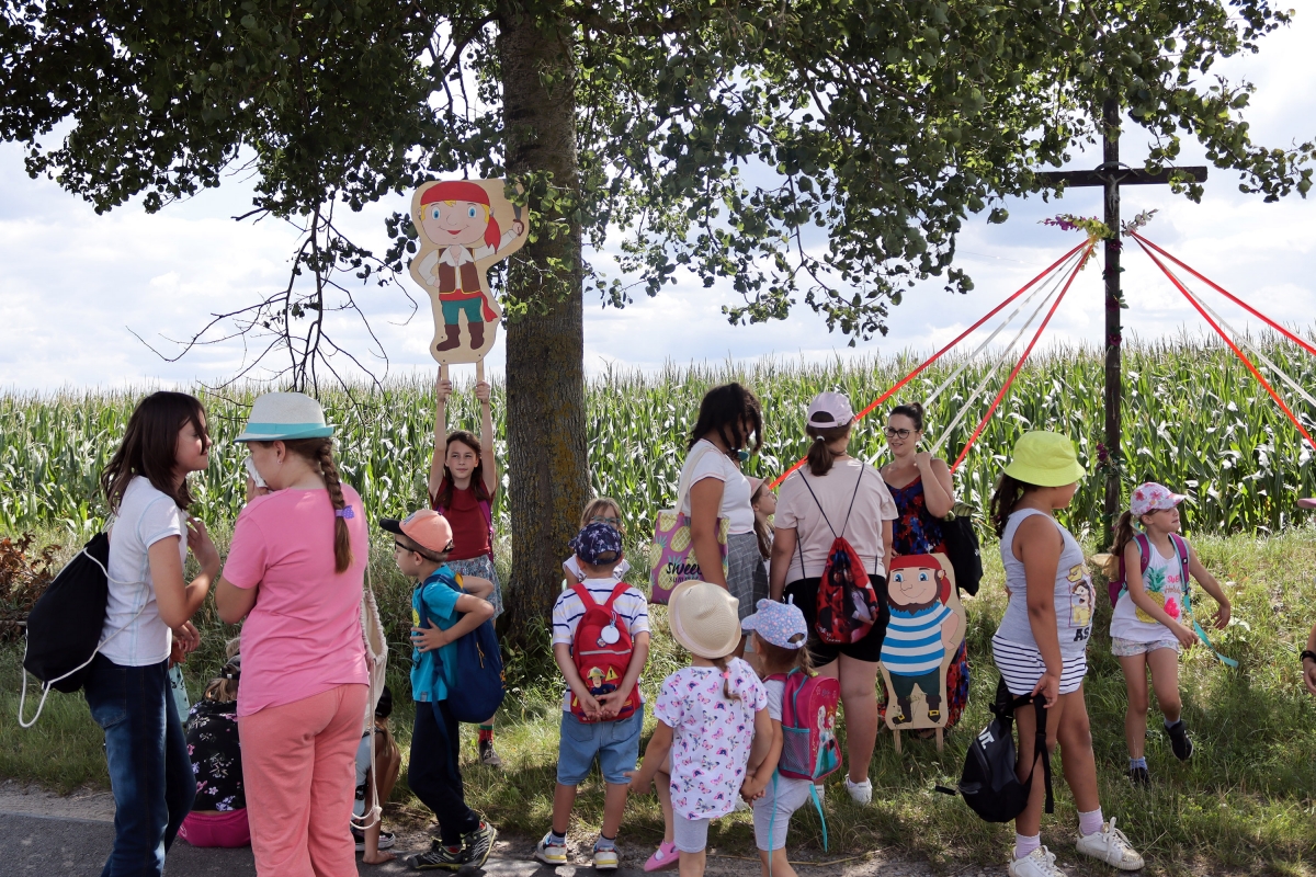 Dzieci uczestniczyły w dwóch wycieczkach. Najpierw odwiedziły Zagrodę Edukacyjną Wolawce w Kamieniu, gdzie brały udział w ciekawych zajęciach manualnych. Wykonywały ramki na zdjęcia oraz drewniane koguty. Sporo radości sprawiło bliskie spotkanie ze zwierzętami z zagrody oraz ognisko z kiełbaskami.