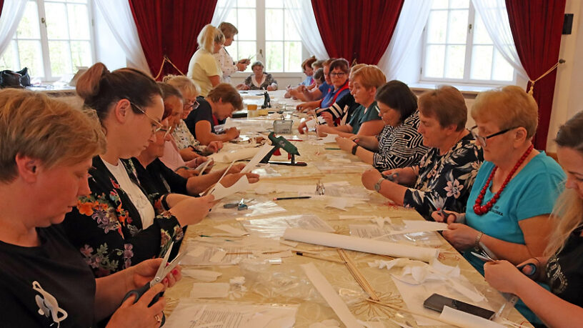 Gościliśmy panie z Koła Gospodyń Wiejskich w Nowinach, które z wielkim zaangażowaniem poprowadziły twórcze zajęcia z wykonywania glicerynowych mydełek oraz irysów z krepiny. Uczestnicy warsztatów nie tylko zdobyli nowe umiejętności, ale również spędzili czas w inspirującej, radosnej atmosferze.