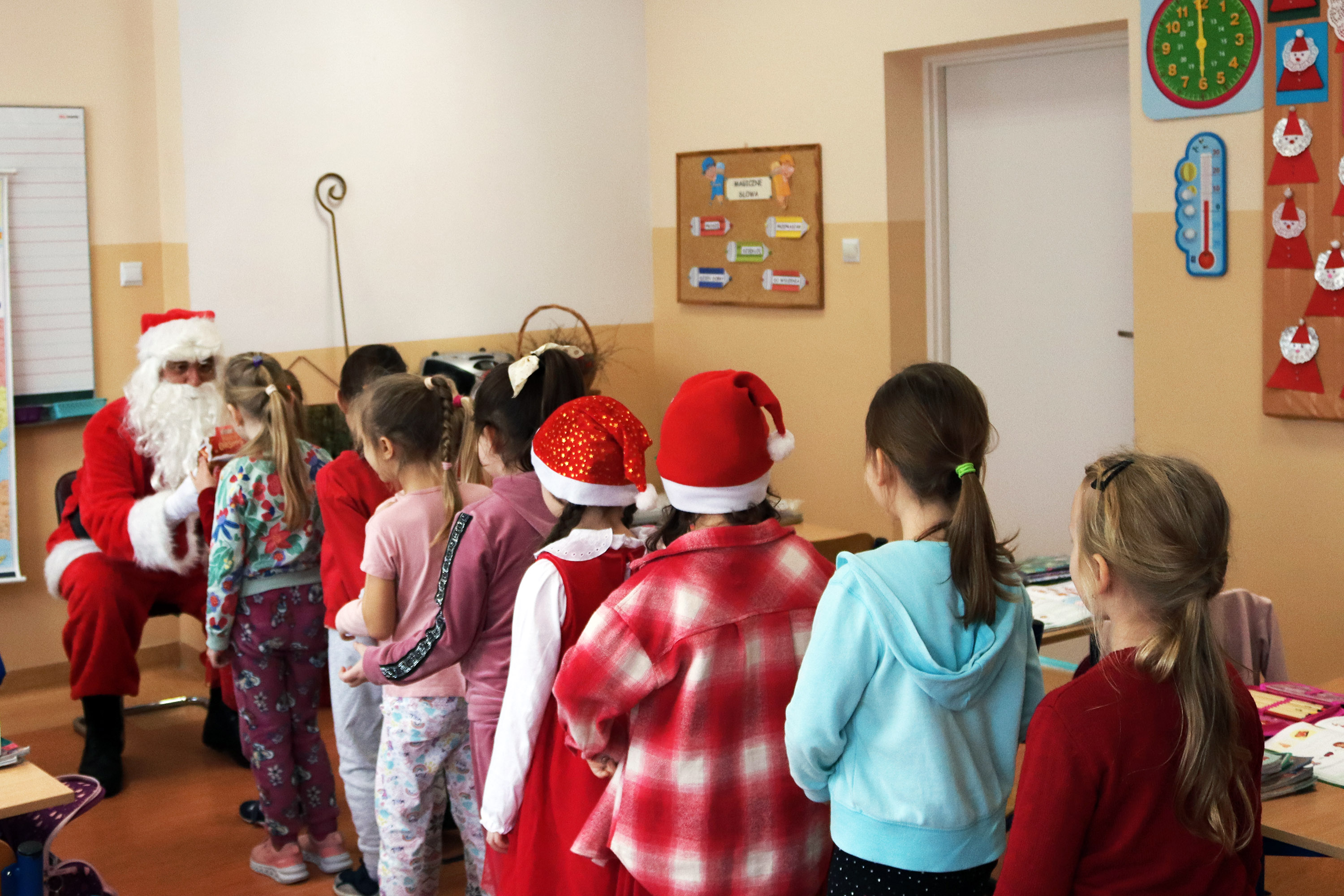 Wizyta Mikołaja wywoływała sporo radości i uśmiechów na twarzach. Dzieci chętnie śpiewały piosenki, recytowały wierszyki i korzystały z możliwości przytulenia się do brodatego gościa.
