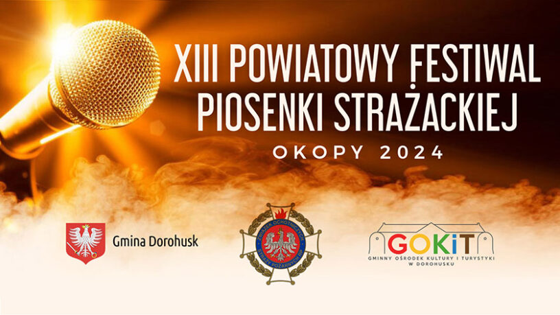 Gmina Dorohusk, OSP Okopy oraz GOKiT w Dorohusku serdecznie zapraszają do udziału w XIII Powiatowym Festiwalu Piosenki Strażackiej, który odbędzie się w sobotę, 4 maja 2024 r. w remizo-świetlicy OSP Okopy. Początek o godz. 9:30.