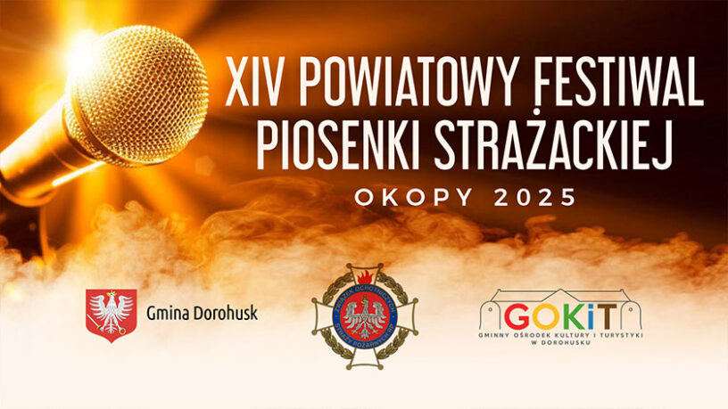 Gmina Dorohusk, OSP Okopy oraz GOKiT w Dorohusku serdecznie zapraszają do udziału w XIV Powiatowym Festiwalu Piosenki Strażackiej, który odbędzie się w sobotę, 10 maja 2025 r. w remizo-świetlicy OSP Okopy. Początek o godz. 9:30.