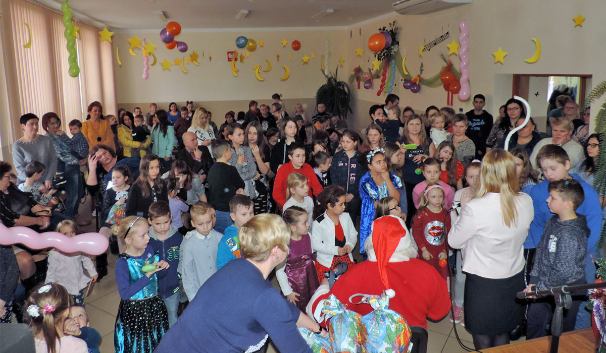 Po części artystycznej na salę zawitał Mikołaj z prezentami, sprawiając dzieciom wielką radość. Następnie najmłodsi bawili się przy skocznej muzyce do późnych godzin wieczornych.