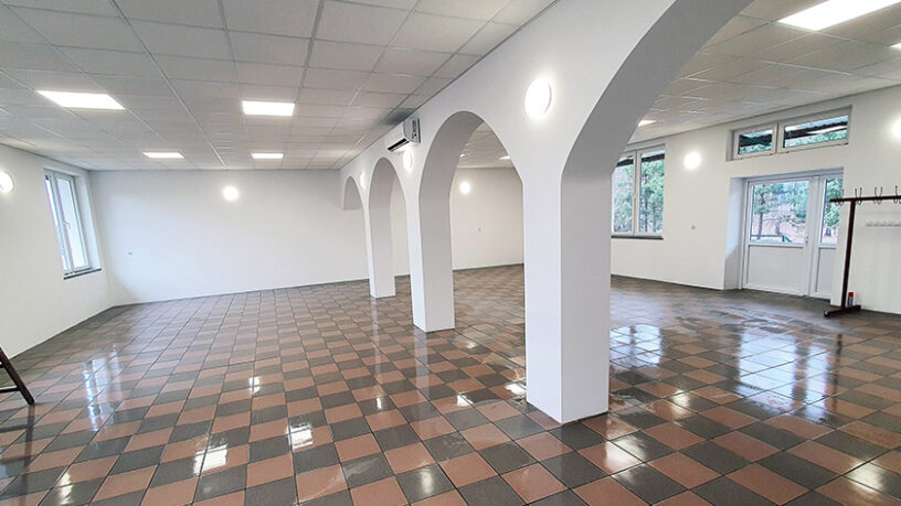 Prace remontowe wewnątrz budynku obejmowały: wymianę drzwi zewnętrznych, remont pomieszczeń (wyrównanie i pomalowanie ścian, wymianę instalacji oświetleniowej) oraz montaż klimatyzatorów do ogrzewania budynku świetlicy.