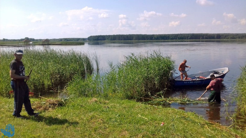 Pracownicy Biura Zarządu Okręgu PZW w Chełmie wykaszali roślinność kosiarką pływającą, a członkowie Koła PZW Dorohusk, z pomocą pracowników interwencyjnych Urzędu Gminy, obkaszali stanowiska od brzegu i usuwali roślinność ze stanowisk.